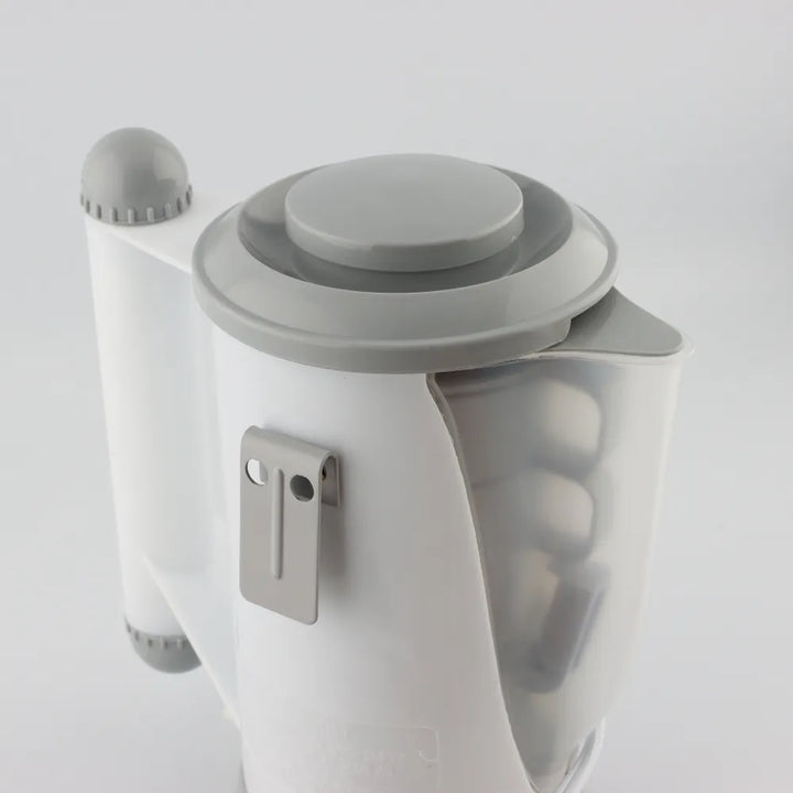Portable travel kettle for hot water in your car, from the 12v cigar lighter socket, the set comes with 2 cups, strainer plus fork and spoon stowed within the handle, making it ideal for hot drinks, soups and instant snacks on the go.