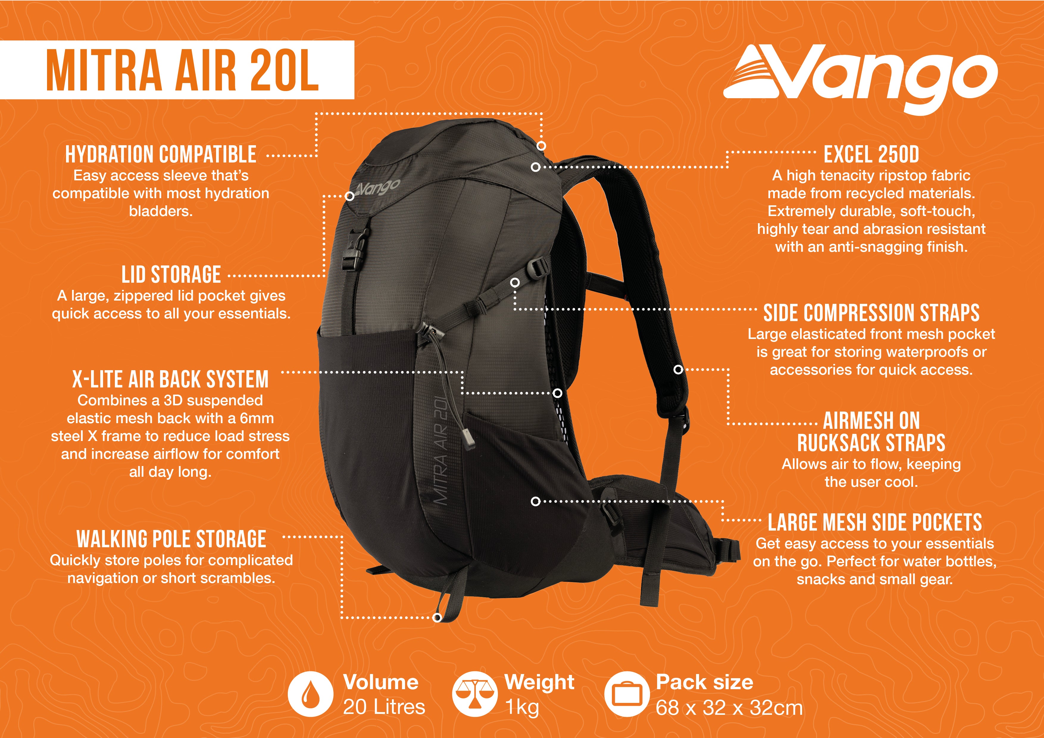 Experience ultimate comfort with the Vango Mitra Air 20 litre Rucksack!