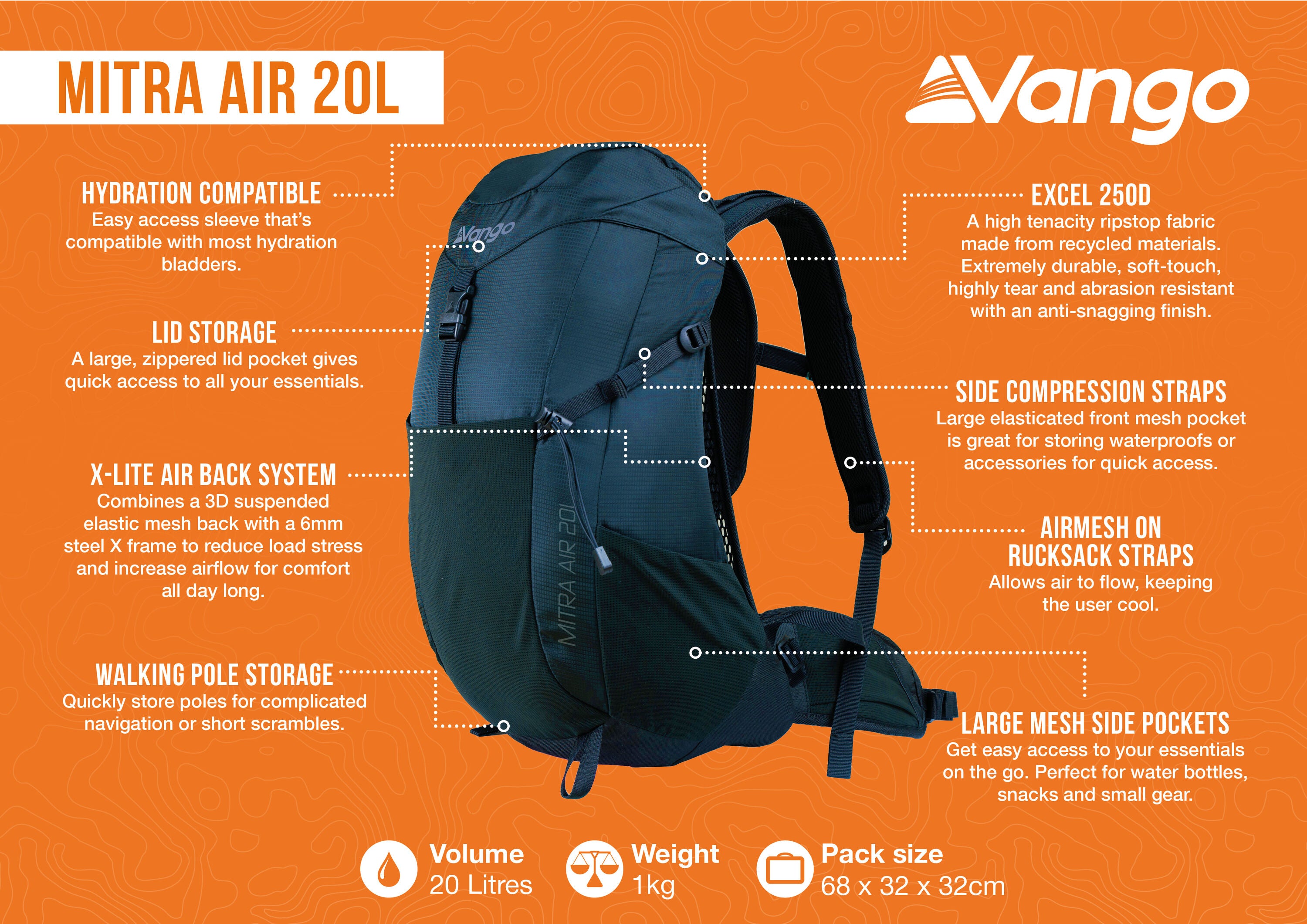 Experience ultimate comfort with the Vango Mitra Air 20 litre Rucksack!