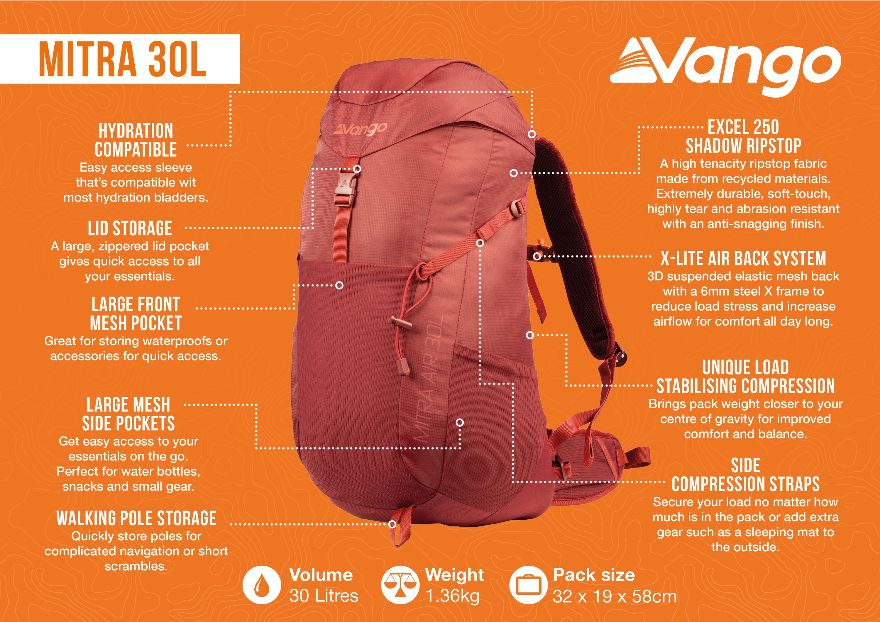 Experience ultimate comfort with the Vango Mitra 30 litre Rucksack!