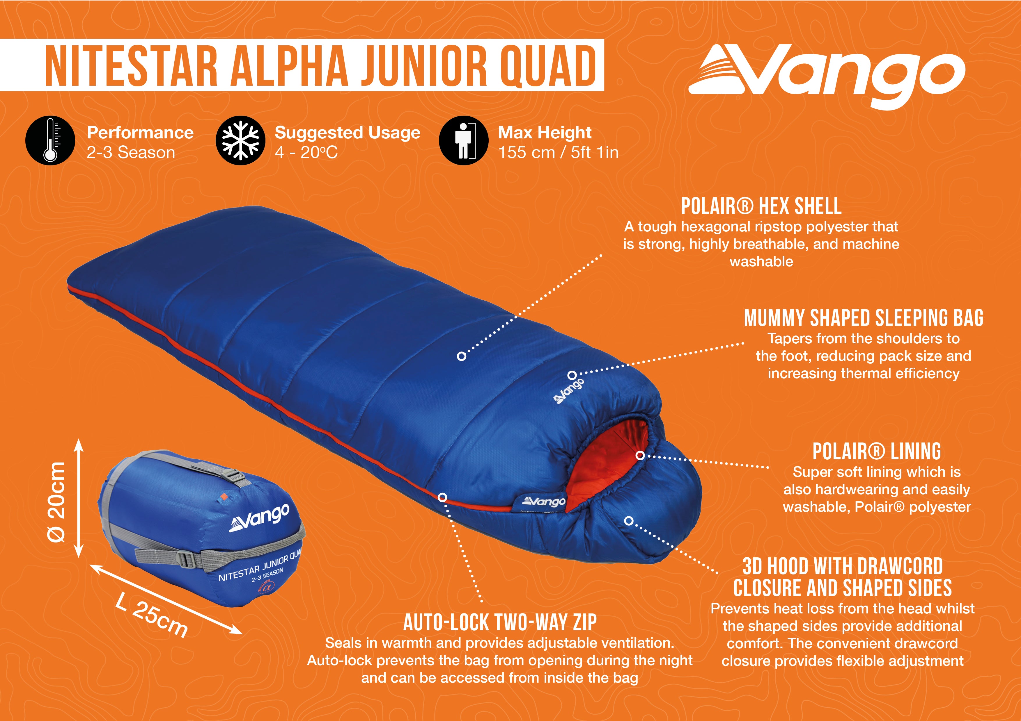 - Insulated Zip Baffle - Retains heat within the sleeping bag and reduces cold spots