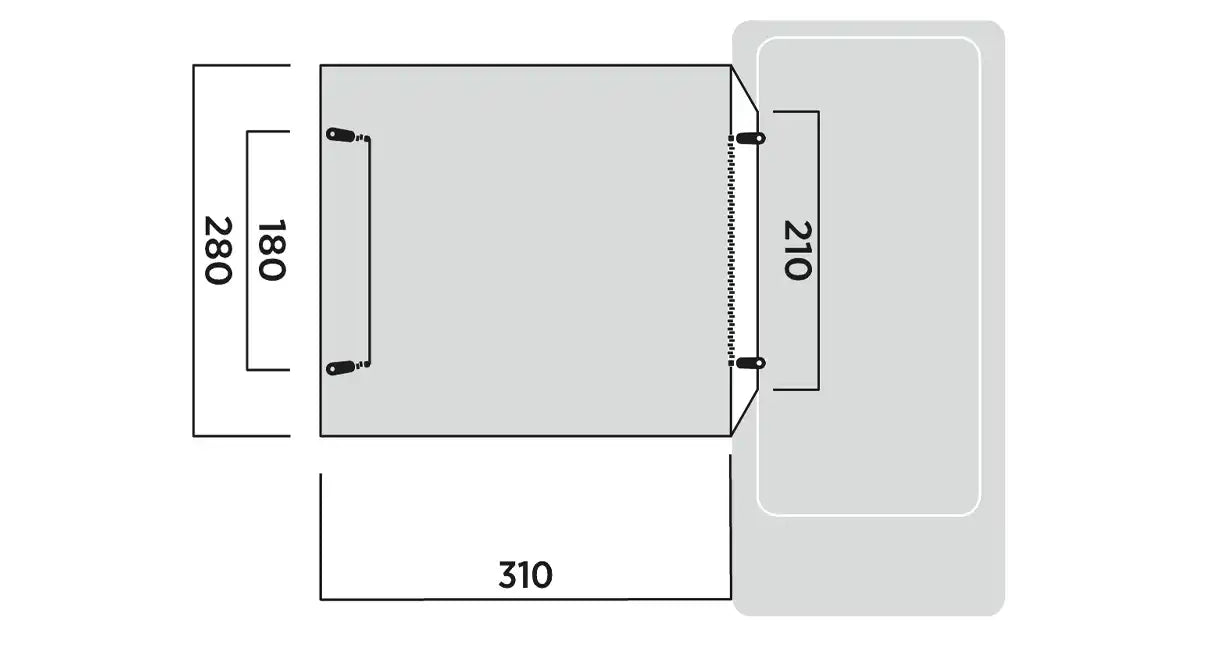 Pre-angled EnduraFlex fibreglass poles create a dome-shaped interior, maximising headroom and usable space. The awning’s 210cm connection length hugs your vehicle snugly, eliminating gaps and drafts. Whether used as a storage zone, dining area, or extra sleeping quarters, the Utne adapts to your needs with a thoughtful layout that prioritises comfort and accessibility.