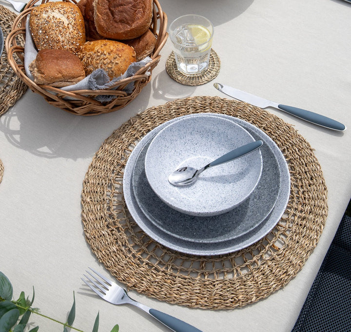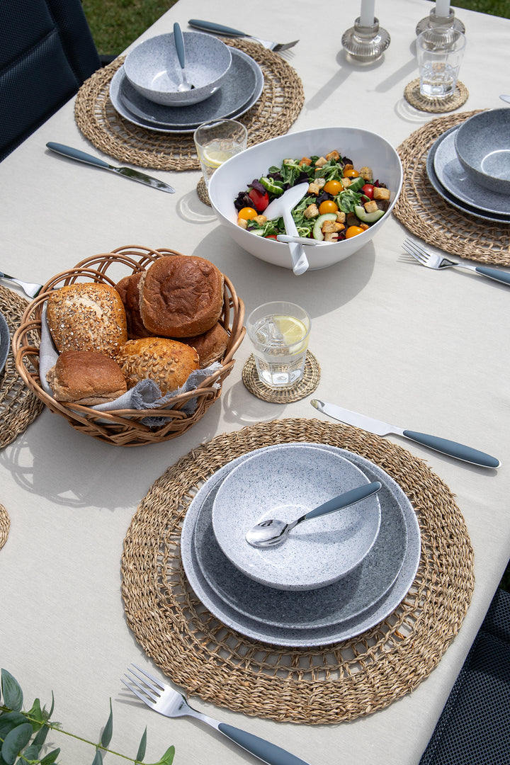 The sleek granite grey finish adds a modern touch to any table, whether you’re parked in a scenic meadow or hosting guests at home. Each piece features a subtle, textured surface that’s both tactile and scratch-resistant, maintaining its polished look even after years of use.
