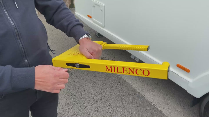 This insurance approved compact Milenco wheel clamps fit all Caravan and Motorhome wheels from 12 inch to 16 inch up to 225 size tyres, alloy and steel. Unique, innovative design with integrated locking mechanism and winding handle. Simply turn winding handle, to clamp on to wheel. Then push handle in to lock. This is probably the easiest wheelclamp to fit that has ever been made. Supplied with carry case.