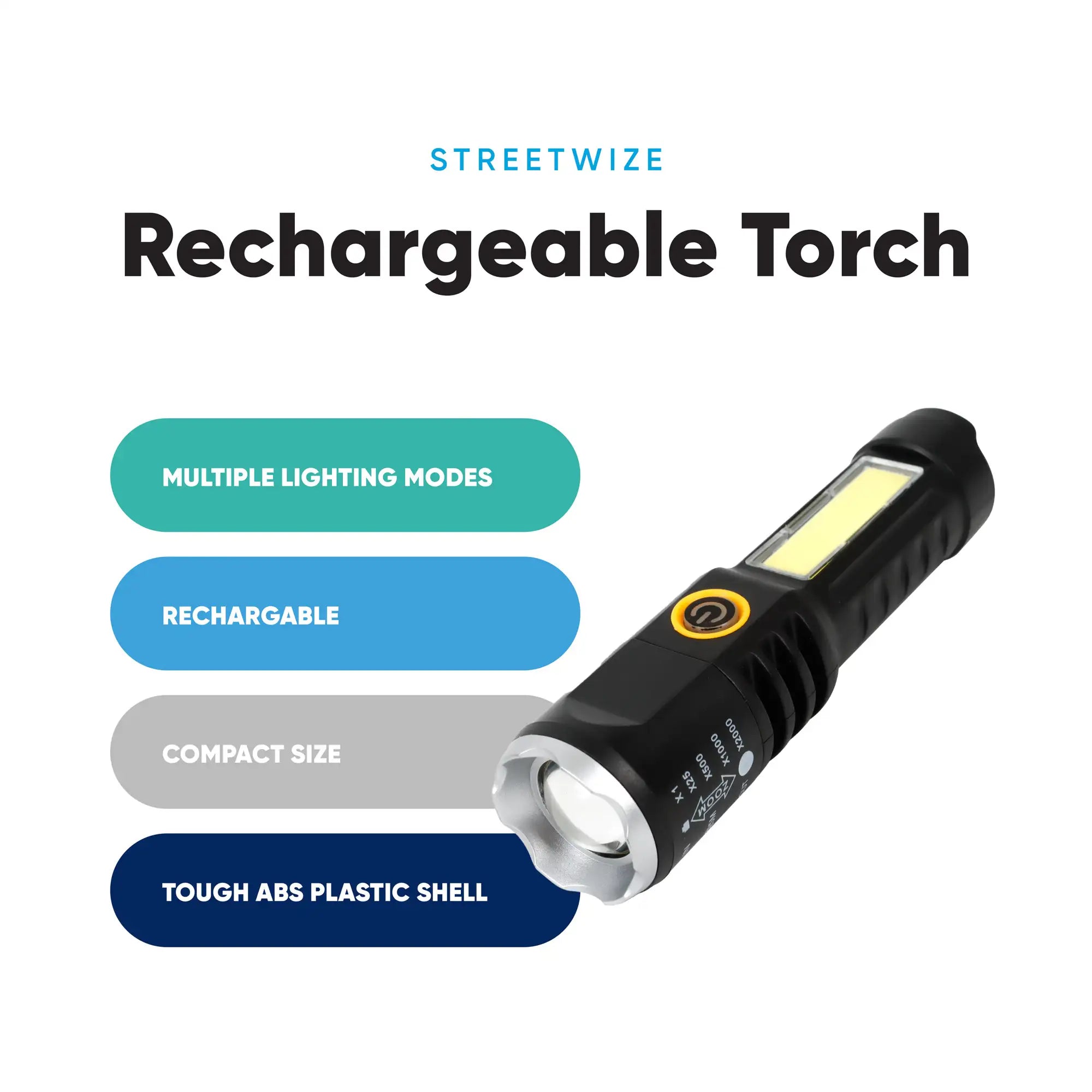 From its tough ABS construction to the focus-adjustable beam, every detail of the Streetwize Rechargeable Torch is crafted for dependability. The modern USB-C charging ensures compatibility with most devices, while the lightweight build guarantees it’s always within reach. A must-have for campers, homeowners, and outdoor enthusiasts alike, this torch delivers practicality and performance in one pocket-sized package.