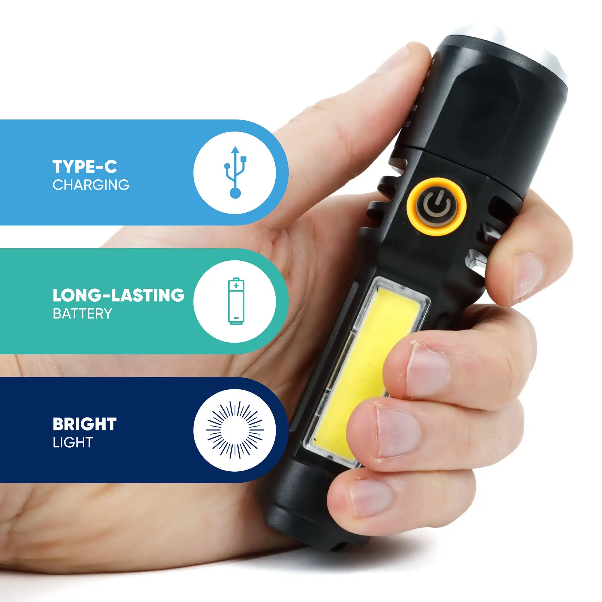 Equipped with a long-lasting 400mAh Li-ion battery and a USB Type-C charging cable, this torch ensures you’re never left in the dark. Recharge quickly at home, in the car, or via a portable power bank. The battery’s efficient design balances runtime and portability, delivering reliable illumination when you need it most.