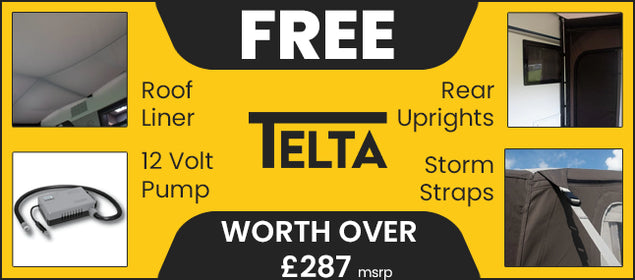 Draught Skirt, Curtains, Handpump, Pegs and Peg straps included.