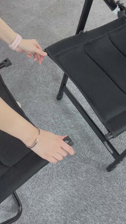 To attach the footrest simply unscrew the end caps from the chair frame and hook the footrest over, clipping them into place. The footrest is securely fitted but easy to unclip to disconnect or for packing away