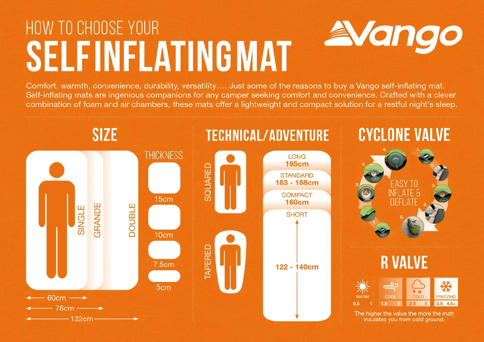 Vango Arcadia 7.5cm Grande Self-Inflating Mat: Supreme Comfort for Camping and Home Guests