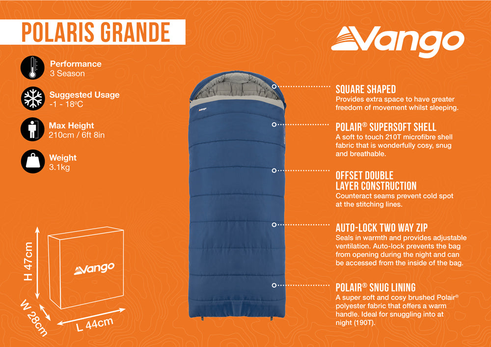 Indulge in luxurious comfort and warmth with the Polaris Grande sleeping bag!