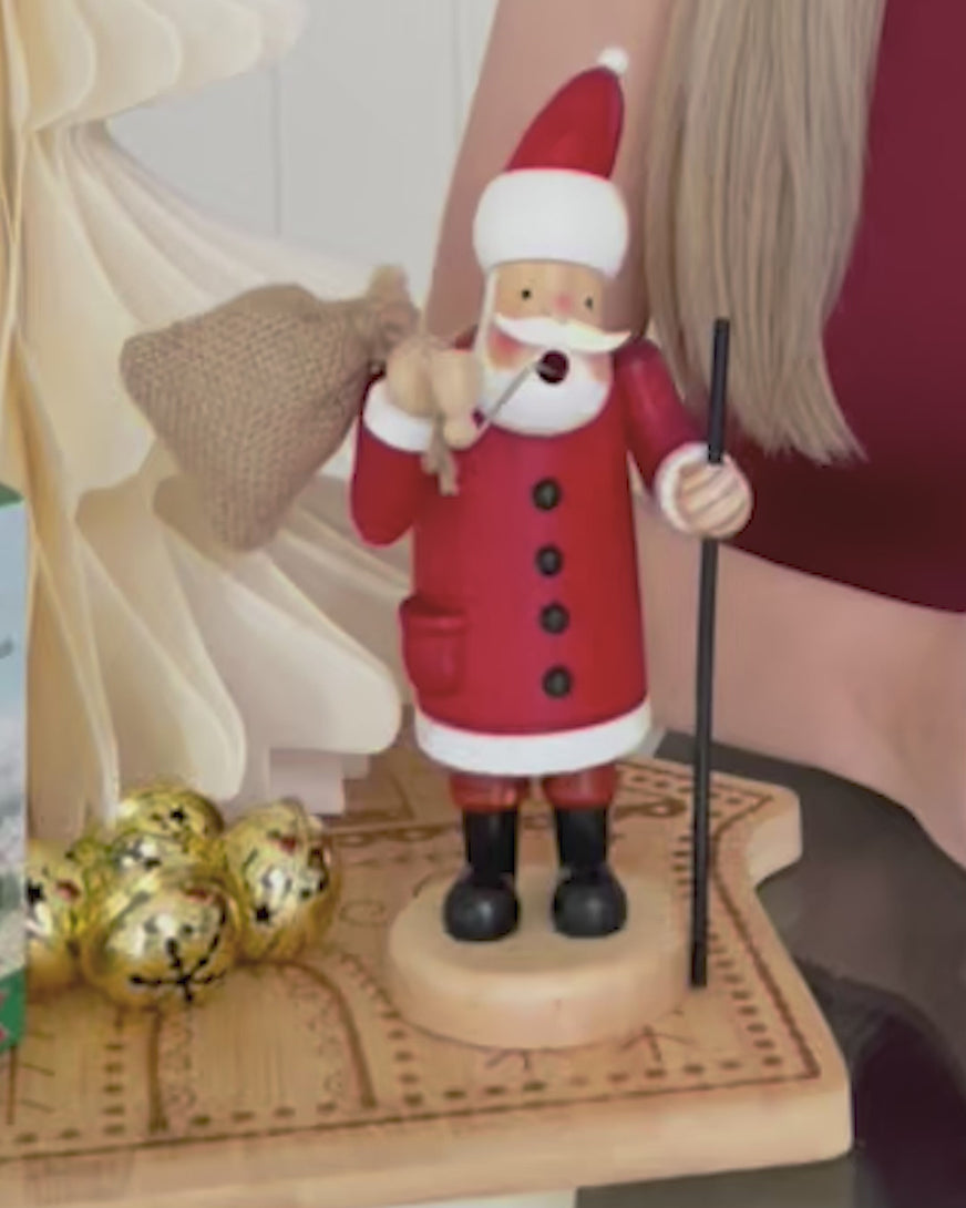 Add a touch of German Christmas cheer to your home with this traditional Räuchermann incense burner festive figure. This Woodcutter character with his axe, saw and carrying a bundle of firewood blows smoke from an incense cone to fill your home with your choice of festive scent.